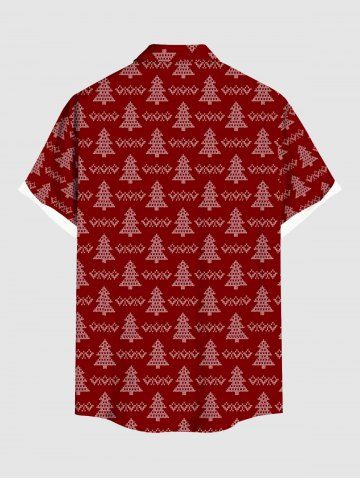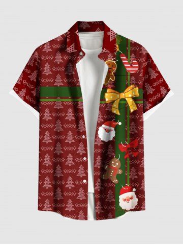 Plus Size Christmas Tree Santa Claus Gingerbread Bowknot Print Buttons Pocket Shirt For Men - Red - 6xl