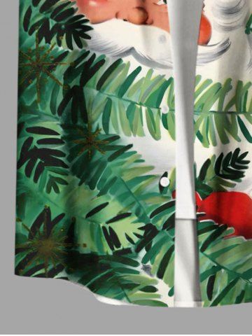 Plus Size Christmas Tree Santa Claus Letters Print Button Pocket Shirt For Men - Green - 6xl