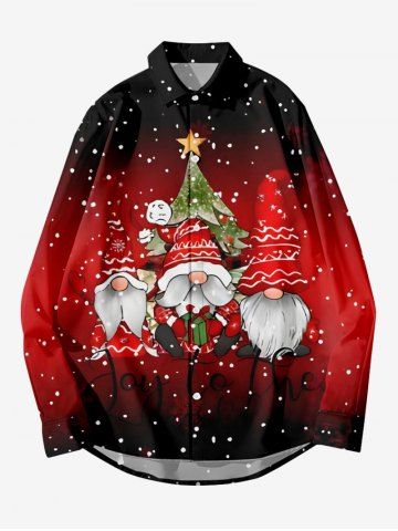 Plus Size Christmas Tree Santa Claus Snowflake Print Ombre Button Long Sleeves Shirt For Men - Red - 3xl