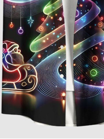 Plus Size Christmas Tree Santa Clause Star Elk Print Buttons Pocket Shirt For Men - Black - Xl
