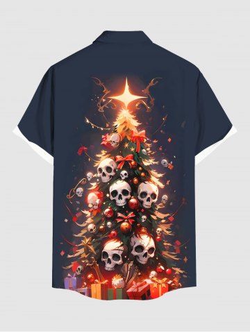 Plus Size Christmas Tree Skull Print Button Pocket Shirt For Men - Black - 2xl