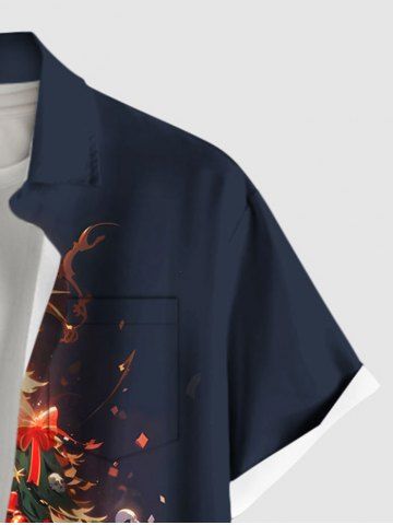 Plus Size Christmas Tree Skull Print Button Pocket Shirt For Men - Black - 3xl
