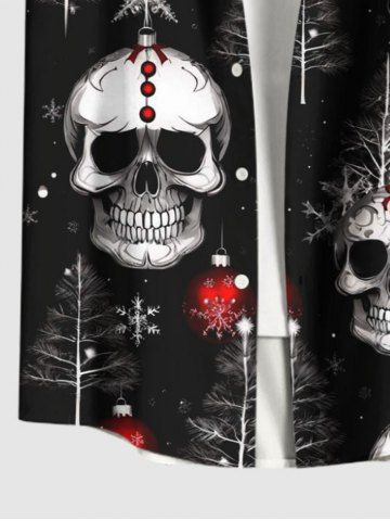 Plus Size Christmas Tree Skull Snowflake Print Button Pocket Shirt For Men - Black - 2xl