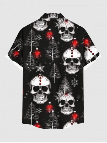 Plus Size Christmas Tree Skull Snowflake Print Button Pocket Shirt For Men - Black - 3xl