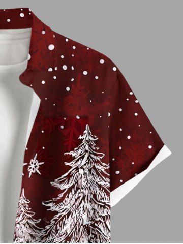 Men's Clothing > Plus Size Christmas Tree Snow Print Button Pocket Shirt For Men
