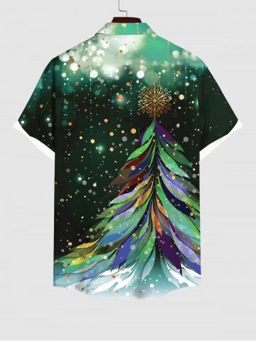 Plus Size Christmas Tree Snowflake Feather Light Spot Print Ombre Button Pocket Shirt For Men - Black - 2xl