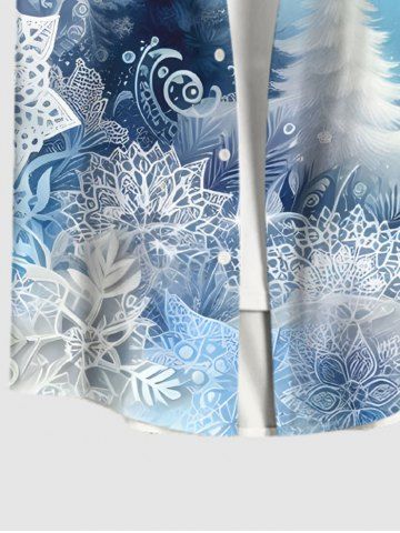 Plus Size Christmas Tree Snowflake Floral Ombre Print Buttons Pocket Shirt For Men - Blue - Xl
