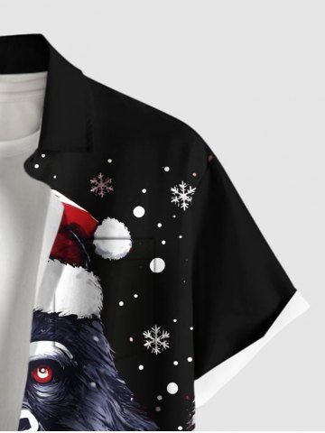 Plus Size Christmas Tree Snowflake Hat Gorilla Print Button Pocket Shirt For Men - Black - 3xl