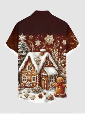 Plus Size Christmas Tree Snowflake House Gingerbread Print Button Pocket Shirt For Men - Light Brown - L