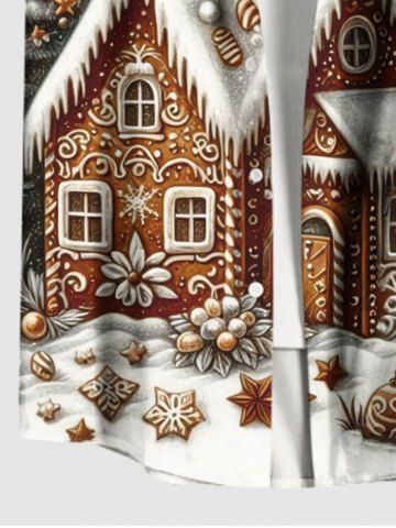Men's Clothing > Plus Size Christmas Tree Snowflake House Gingerbread Print Button Pocket Shirt For Men