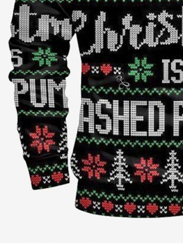 Plus Size Christmas Tree Snowflake Knitting 3D Print Zipper Polo Shirt For Men - Black - Xs