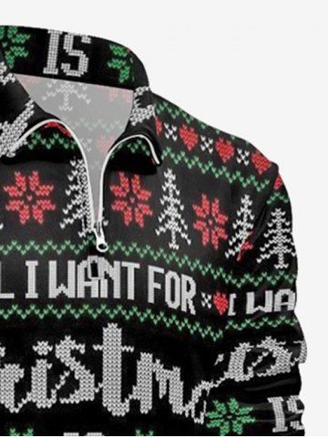 Plus Size Christmas Tree Snowflake Knitting 3D Print Zipper Polo Shirt For Men - Black - 2xl