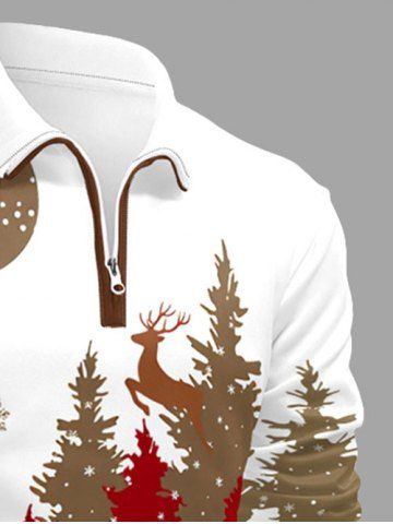 Men's Clothing > Plus Size Christmas Tree Snowflake Moon Colorblock Print Zipper Polo Shirt For Men