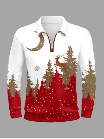 Men's Clothing > Plus Size Christmas Tree Snowflake Moon Colorblock Print Zipper Polo Shirt For Men