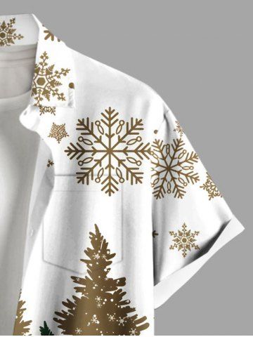 Plus Size Christmas Tree Snowflake Moon Elk Print Buttons Pocket Shirt For Men - Green - S