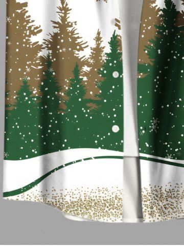 Plus Size Christmas Tree Snowflake Moon Elk Print Buttons Pocket Shirt For Men - Green - L