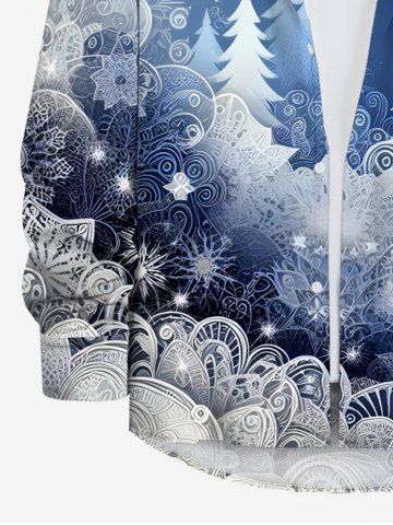 Plus Size Christmas Tree Snowflake Ombre Galaxy Print Button Long Sleeves Shirt For Men - Blue - 4xl
