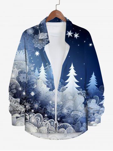 Plus Size Christmas Tree Snowflake Ombre Galaxy Print Button Long Sleeves Shirt For Men - Blue - 5xl