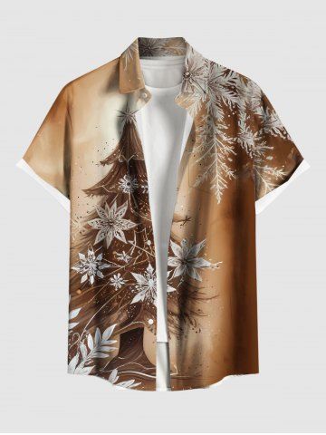 Plus Size Christmas Tree Snowflake Ombre Print Button Pocket Shirt For Men - Light Brown - M