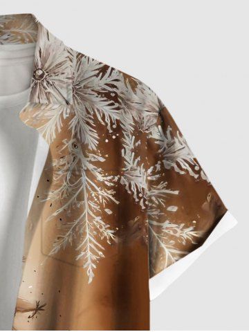 Plus Size Christmas Tree Snowflake Ombre Print Button Pocket Shirt For Men - Light Brown - L