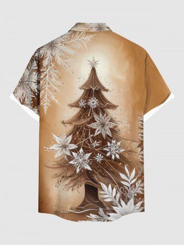 Plus Size Christmas Tree Snowflake Ombre Print Button Pocket Shirt For Men - Light Brown - 3xl