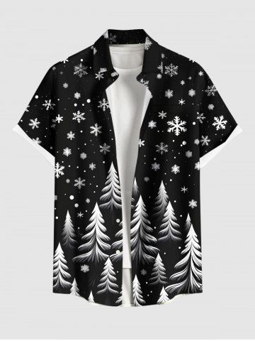Plus Size Christmas Tree Snowflake Print Button Pocket Shirt For Men - Black - S