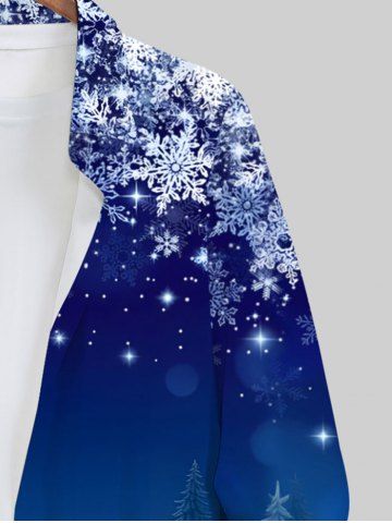 Plus Size Christmas Tree Snowflake Print Buttons Pocket Long Sleeve Shirt For Men - Blue - Xl