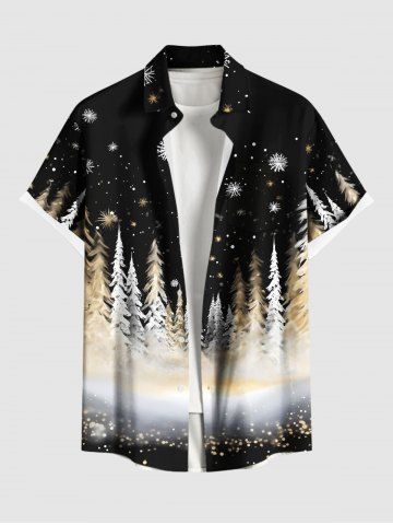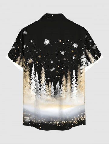 Plus Size Christmas Tree Snowflake Print Buttons Pocket Shirt For Men - Black - 6xl