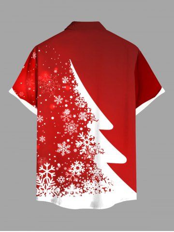 Plus Size Christmas Tree Snowflake Print Buttons Pocket Shirt For Men - Red - L