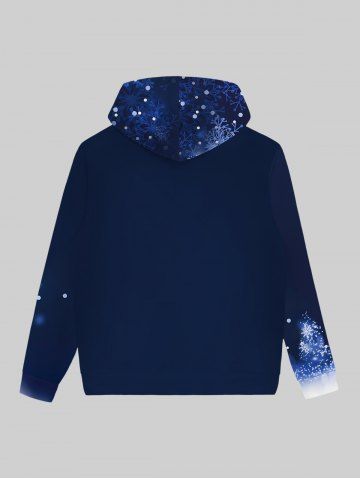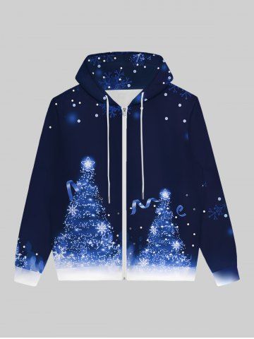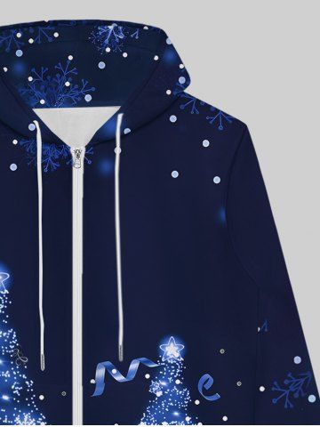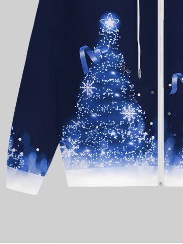 Plus Size Christmas Tree Snowflake Ribbon Stars Print Zipper Pocket Drawstring Long Sleeves Hoodie For Men - Midnight Blue - 3xl