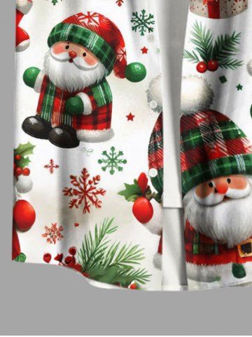 Plus Size Christmas Tree Snowflake Santa Claus Print Button Pocket Shirt For Men - White - Xl