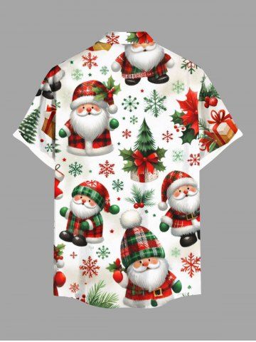 Plus Size Christmas Tree Snowflake Santa Claus Print Button Pocket Shirt For Men - White - 6xl
