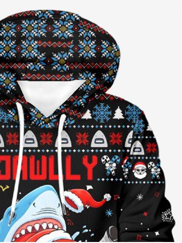 Plus Size Christmas Tree Snowflake Santa Claus Shark Print Pullover Long Sleeves Hoodie For Men - Black - 7xl
