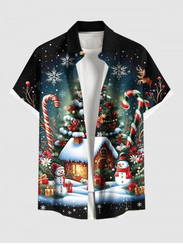 Plus Size Christmas Tree Snowflake Snowman Candy House Ombre Galaxy Print Shirt For Men - Black - 3xl