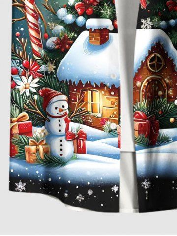 Plus Size Christmas Tree Snowflake Snowman Candy House Ombre Galaxy Print Shirt For Men - Black - 4xl