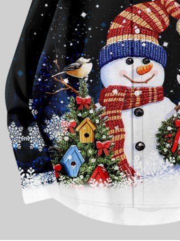 Plus Size Christmas Tree Snowflake Snowman Galaxy Print Button Long Sleeves Shirt For Men - Black - 2xl
