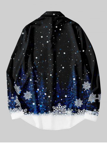 Plus Size Christmas Tree Snowflake Snowman Galaxy Print Button Long Sleeves Shirt For Men - Black - 4xl