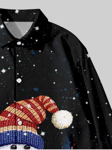 Plus Size Christmas Tree Snowflake Snowman Galaxy Print Button Long Sleeves Shirt For Men - Black - 8xl