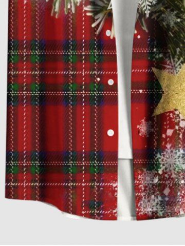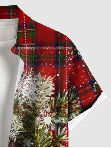 Plus Size Christmas Tree Snowflake Star Plaid Print Button Pocket Shirt For Men - Red - 2xl