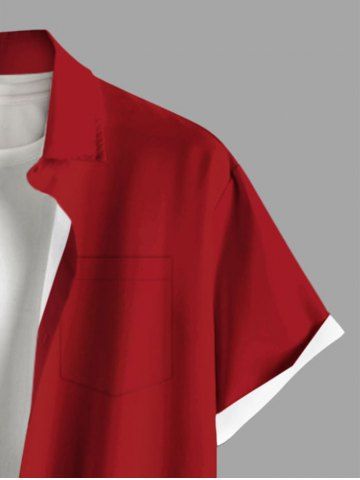Plus Size Christmas Tree Snowman Colorblock Print Buttons Pocket Shirt For Men - Red - 2xl