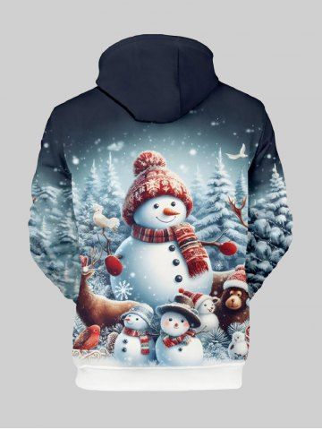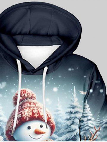 Plus Size Christmas Tree Snowman Elk Bird Ombre Print Pocket Drawstring Hoodie For Men - Black - 3xl
