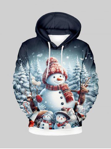Men's Clothing > Plus Size Christmas Tree Snowman Elk Bird Ombre Print Pocket Drawstring Hoodie For Men