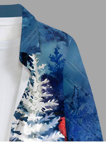 Plus Size Christmas Tree Snowman Forest Print Button Long Sleeves Shirt For Men - Sky Blue - 4xl