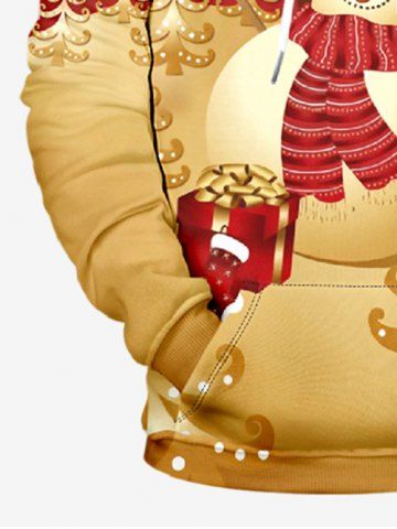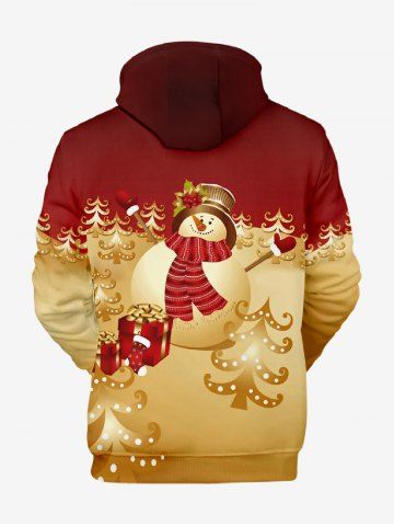 Plus Size Christmas Tree Snowman Gift Box Print Pocket Drawstring Hoodie For Men - Red - M