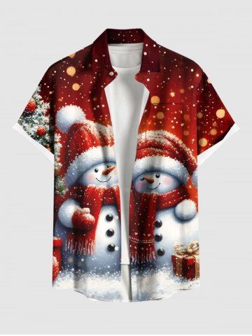 Plus Size Christmas Tree Snowman Light Spot Print Ombre Button Pocket Shirt For Men - Red - L