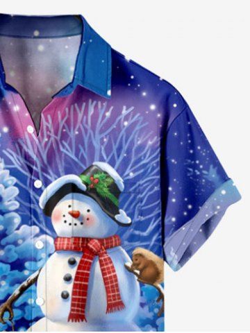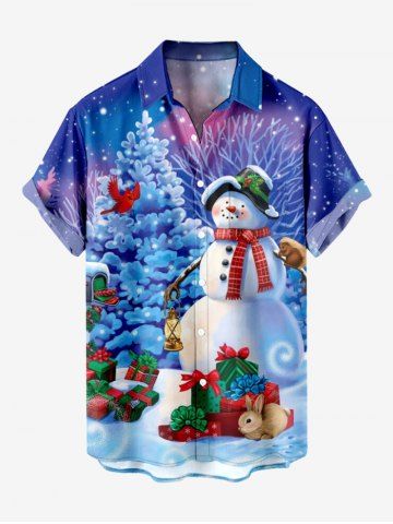 Plus Size Christmas Tree Snowman Snowflake Bird Rabbit Print Buttons Pocket Shirt For Men - Sky Blue - S
