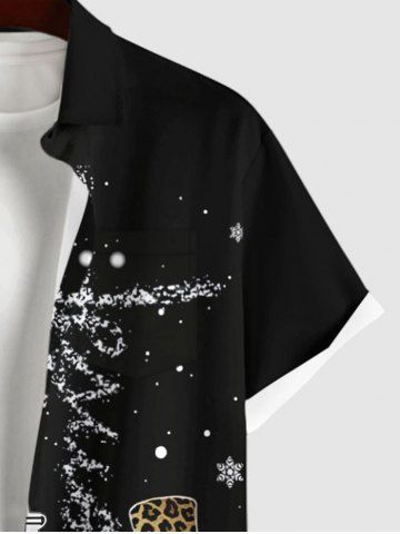 Plus Size Christmas Tree Snowman Snowflake Cross Print Buttons Pocket Shirt For Men - Black - 2xl