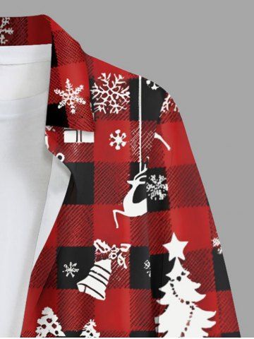 Plus Size Christmas Tree Snowman Snowflake Elk Plaid Print Buttons Pocket Shirt For Men - Red - L