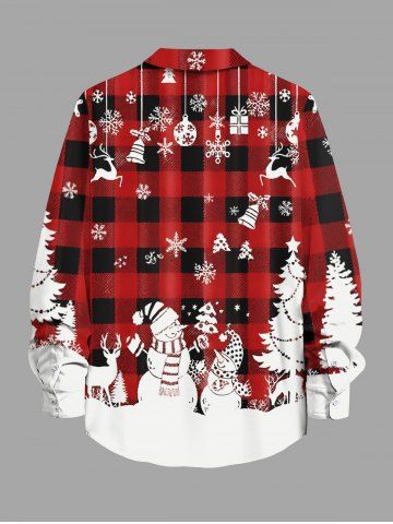 Plus Size Christmas Tree Snowman Snowflake Elk Plaid Print Buttons Pocket Shirt For Men - Red - 7xl