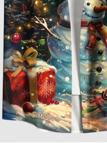 Plus Size Christmas Tree Snowman Star Gift Box Star Print Buttons Pocket Shirt For Men - Green - L